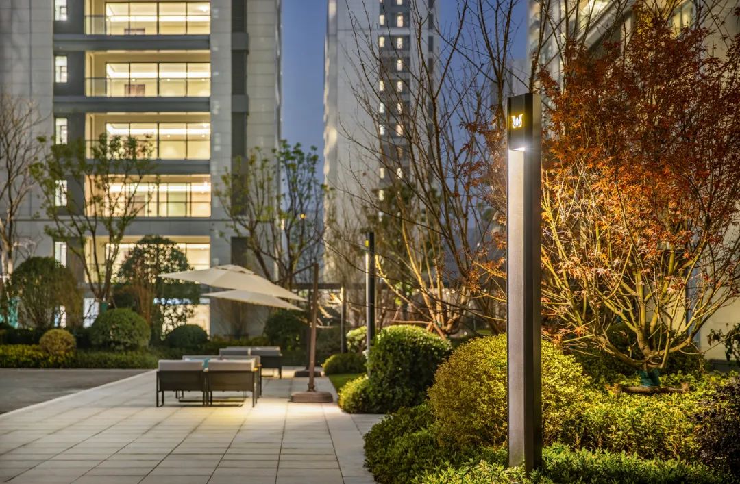 夜晚归家,微光点点,温暖精致的路灯,时刻为业主指引明亮的回家路。