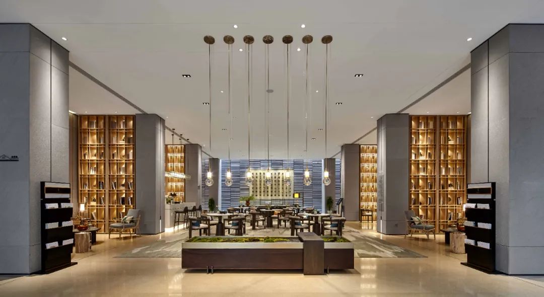 当灰白色石材、浅灰和深灰色铝板及大面积玻璃的组合在此碰撞,宋代文脉中“水天一色,天人合一”的极致感和现代化国际都市的现代感默契交融。