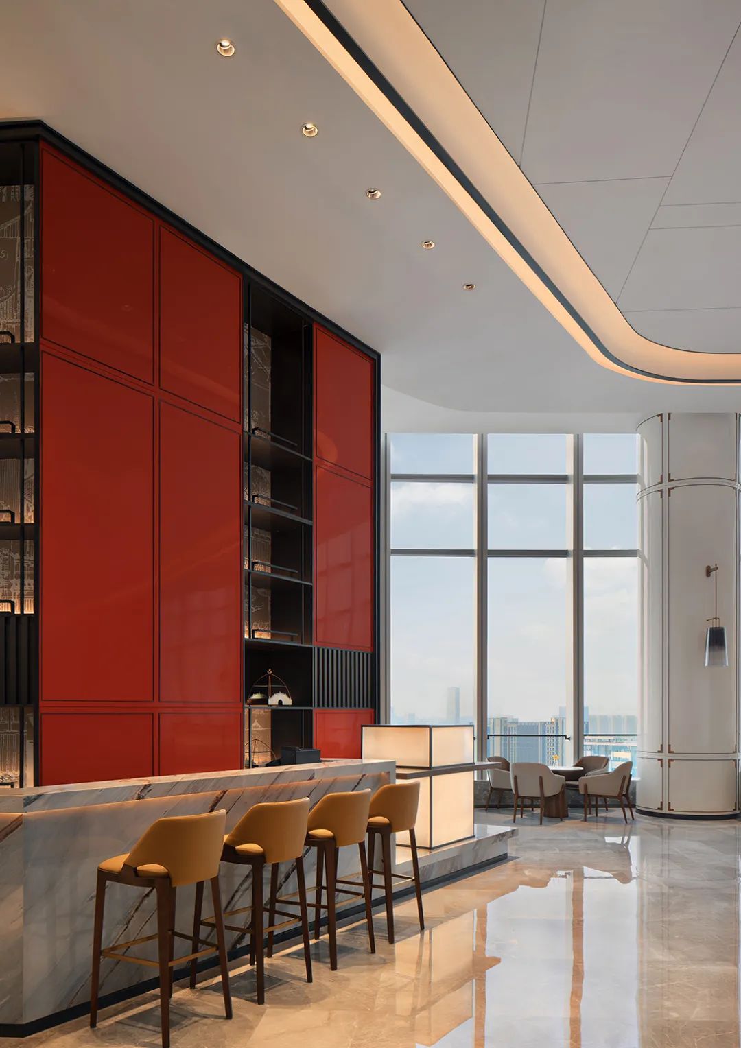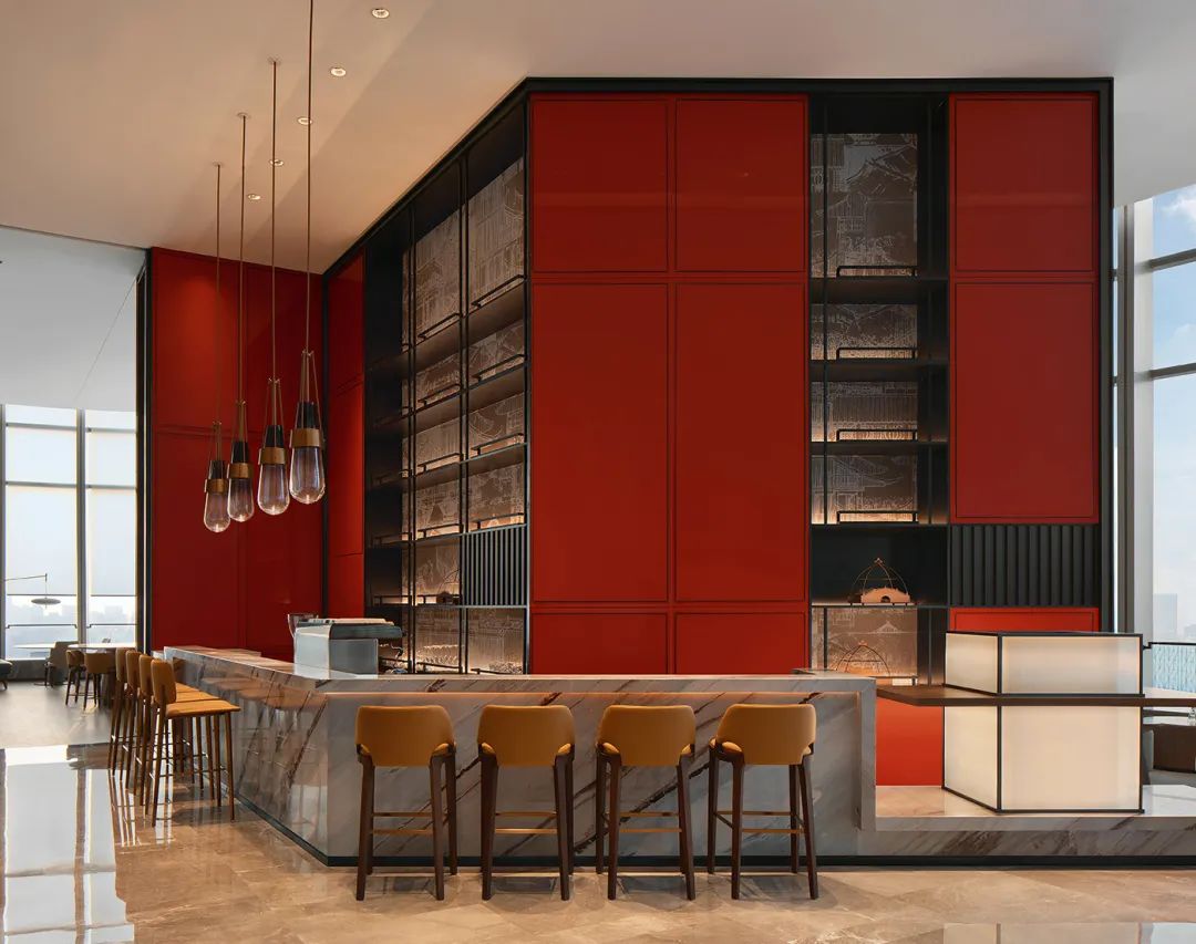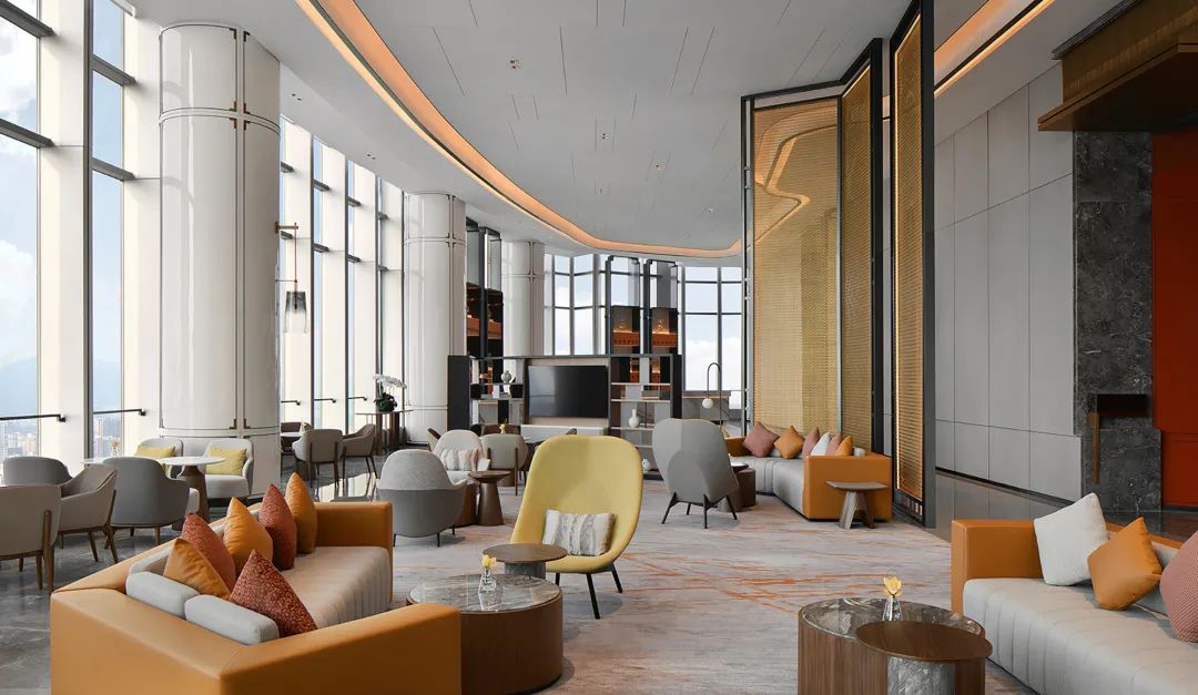 本案酒店位于长沙滨江新城的金融中心核心位置,以241米高度闪耀天际线,环绕于湘江河水之畔,俯览一线江景,成为长沙新地标建筑之一。在这座集商业、公寓、酒店为一体的多元复合业态建筑中,万景百年综合考虑平面最优布局以及前后场转换的流畅性,通过空间的重组打破原有限制,同时结合在地环境的特点,将当地金楼玉阁和现代化高速发展相融合,为每一个入住者带来尽善尽美的空间场景与优质服务。