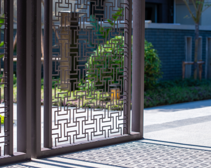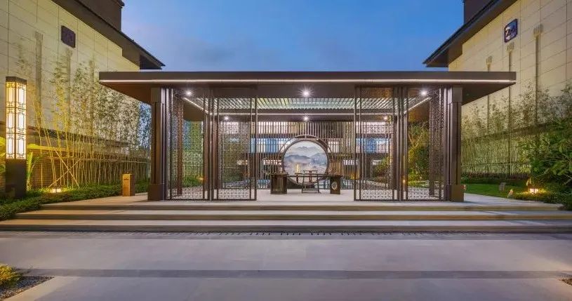 从入园的每一步开始,流动的光影、摇曳的绿叶,皆是对自然与构筑物之间关系的巧妙处理,步入期间方能感受这一方意趣自然生活模样。迎客松、竹子等富含中国传统文化的植物随处可见,将尊崇仪式感建构于点滴细节之中,置身其中倍感清雅。
