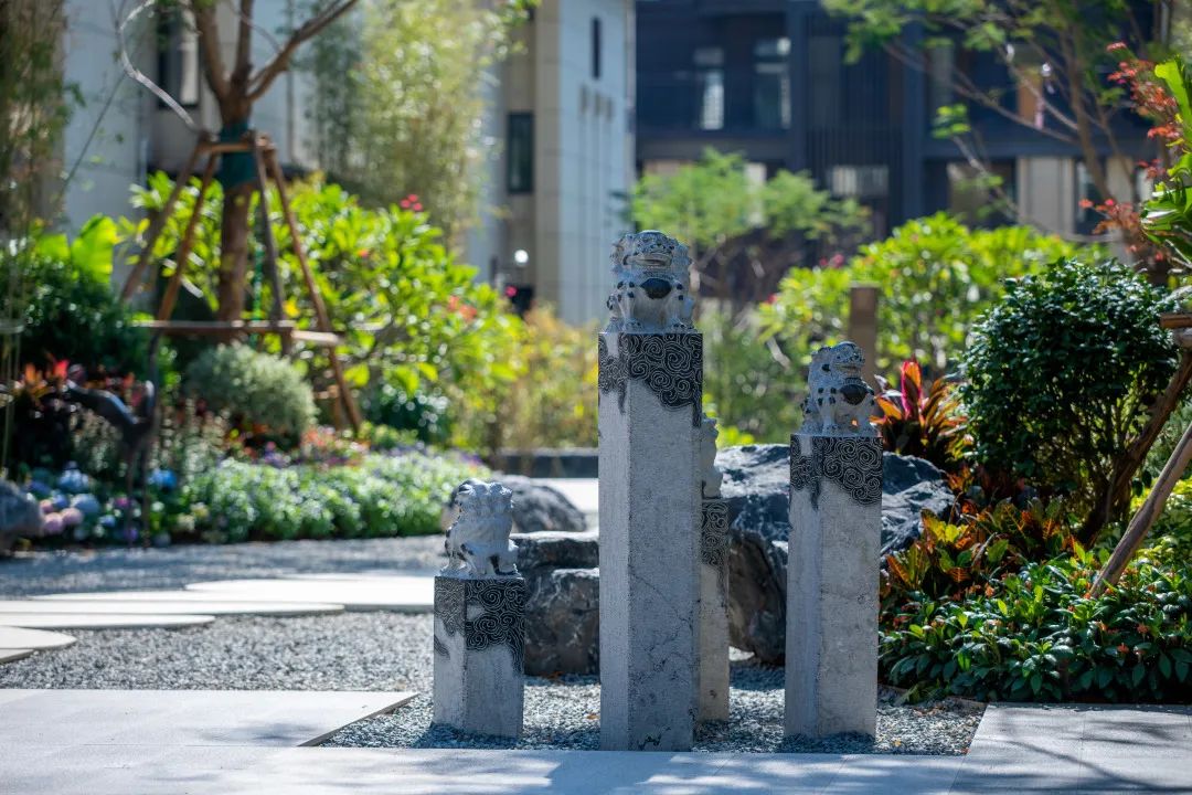 象征着吉祥、美好寓意的石狮、白鹤等建筑石雕,在归家路途的角落,铺陈开艺术与气韵更予以居者最大尊崇感。