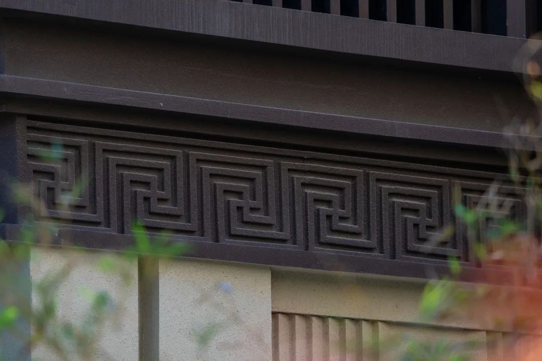 棕铜色建筑立面,延承唐风建筑精髓,承续千年人文底色,点缀以奇石、浓荫,建筑与自然和恰融合,偶尔有雀鸟驻足,鸟鸣山幽,雅致大方,于此寻回古人放怀山林的诗意梦想。