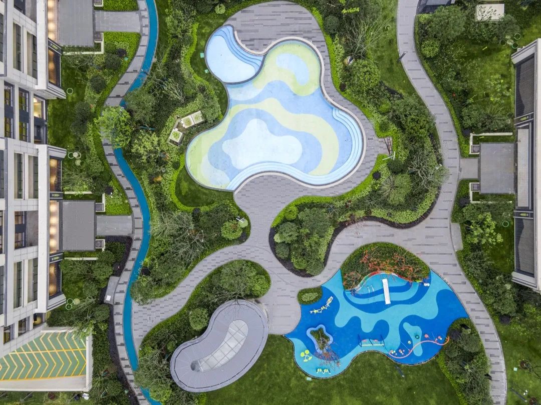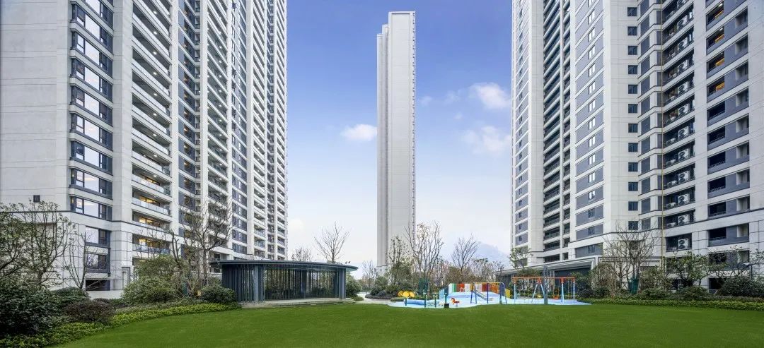 穿越朴树、银杏、紫薇、樱花等乔木,在休闲廊架小憩,在儿童玩乐区嬉戏,蓝天、绿草皮、建筑美景,勾勒出一番绝美情境,社交、运动自是惬意。