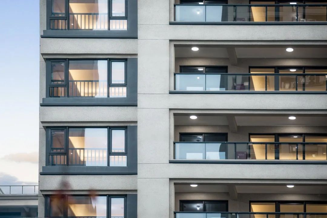 温州球王会体育在线璀璨澜庭以深灰色金属漆和浅色多彩漆为主,局部搭配铝型材衬托线条,迎合时下审美潮流。