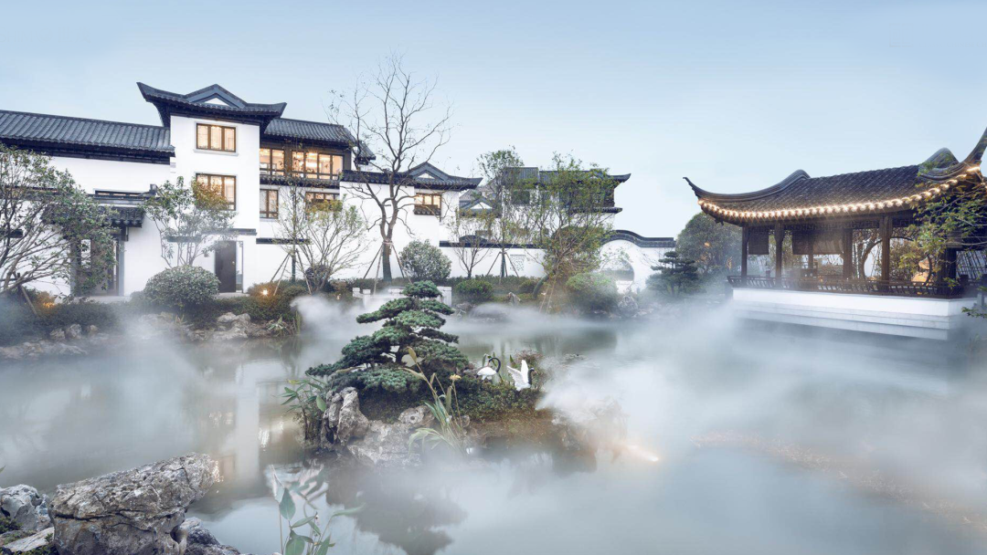 武汉球王会体育在线龙湾以“一府一轴十院八巷十里”造就国风园林,黛瓦白墙、古韵连廊、约10亩央景园林,清溪叠石、潺潺流水营造江南小桥流水人家既视感。