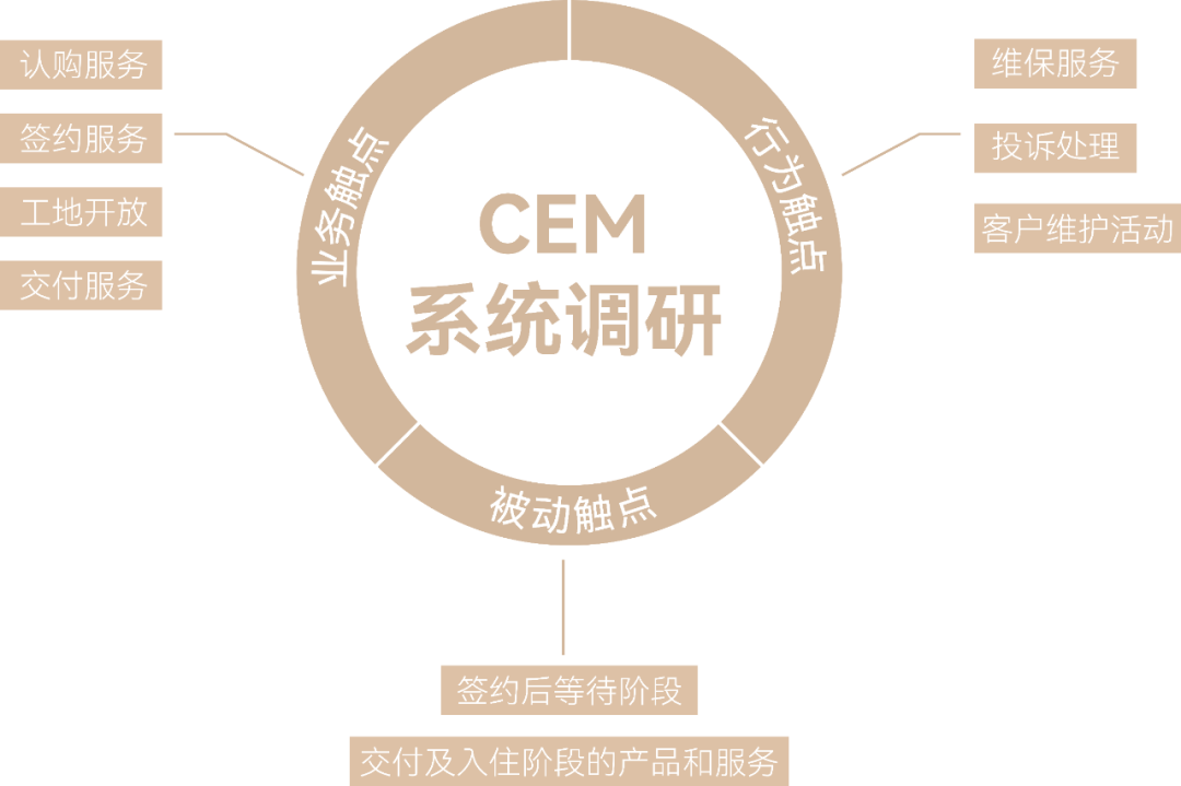 CEM系统的调研类型,包含业务触点、行为触点和被动触点三大类,重点围绕产品质量、物业服务、签约及交付服务、维保服务等11个业务敏感点,制定全周期、全流程、全覆盖的满意度调研。上半年共收到50000+份调研有效样本。基于样本反馈结果进行针对性产品与服务品质的提升,让幸福生活的颗粒度更加精细。