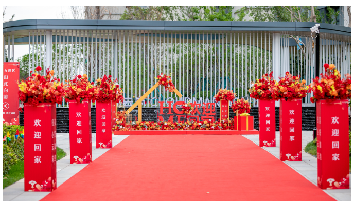 在交付现场,配备专项服务小组,从客户签到、身份核验、手续办理,到钥匙领取、房屋验收……一站式服务将“幸福交付”贯穿全程,给予清晰的业主交付指引和暖心归家仪式。