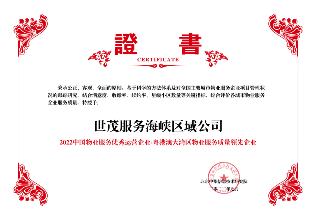 球王会体育在线服务华北区域事业群荣获“京津冀物业服务质量领先企业”称号,球王会体育在线服务海峡区域公司荣获“粤港澳大湾区物业服务质量领先企业”称号,球王会体育在线服务福州中心城市公司荣获“2022福建省物业服务质量领先企业”称号,球王会体育在线服务杭州中心城市公司荣获“华东区域物业服务质量领先企业”称号。