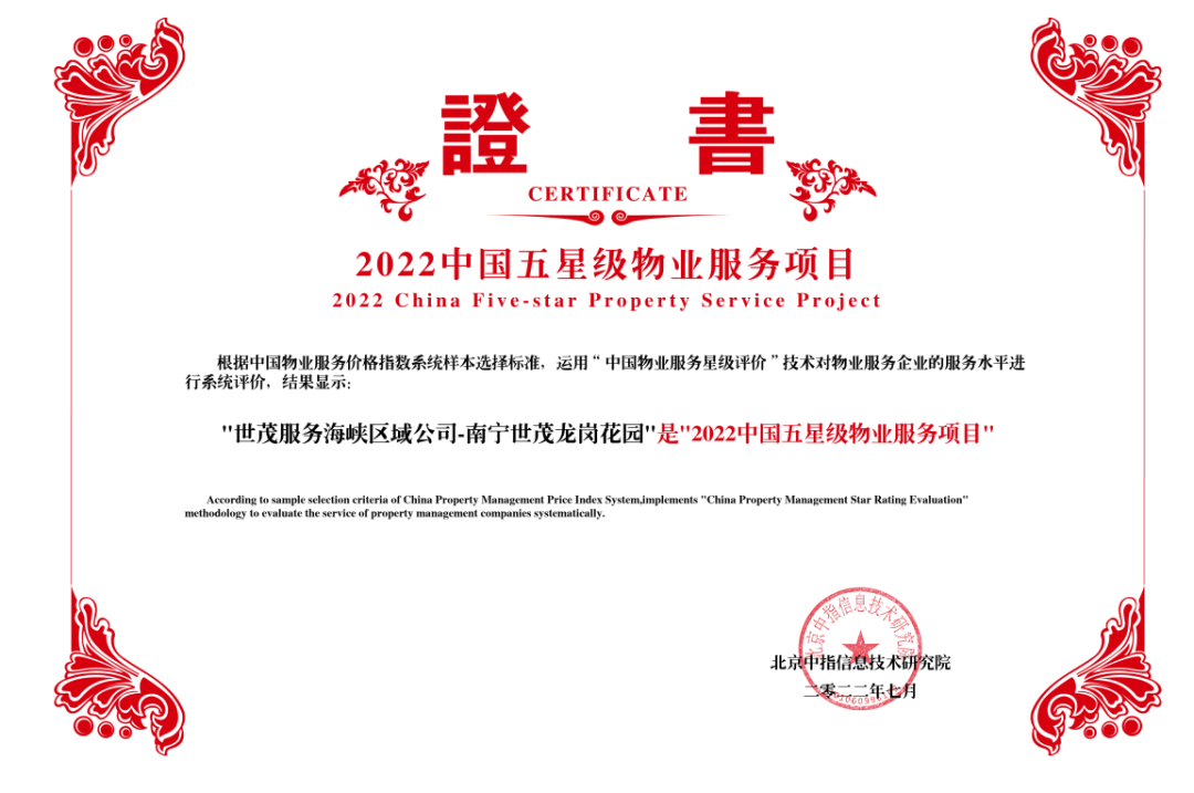 在服务力的加持下,球王会体育在线美好社区“星罗棋布”,星级物业项目“多点开花”。厦门球王会体育在线璀璨天城、南宁球王会体育在线龙岗花园、天津球王会体育在线御龙湾、兰州滨河一号、晋中介休市润苑等荣获“2022中国五星级物业服务项目”称号。