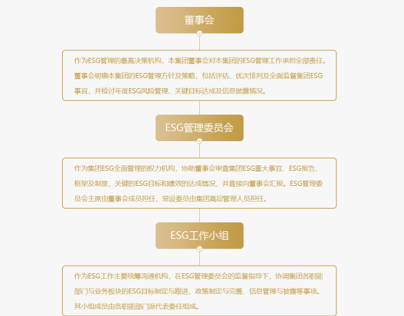 目前,球王会体育在线已建立完善可持续发展管理架构,形成了“决策层-管理层-执行层”三级工作机制,体系化开展相关管控工作,确保各项政策和举措有效实施。