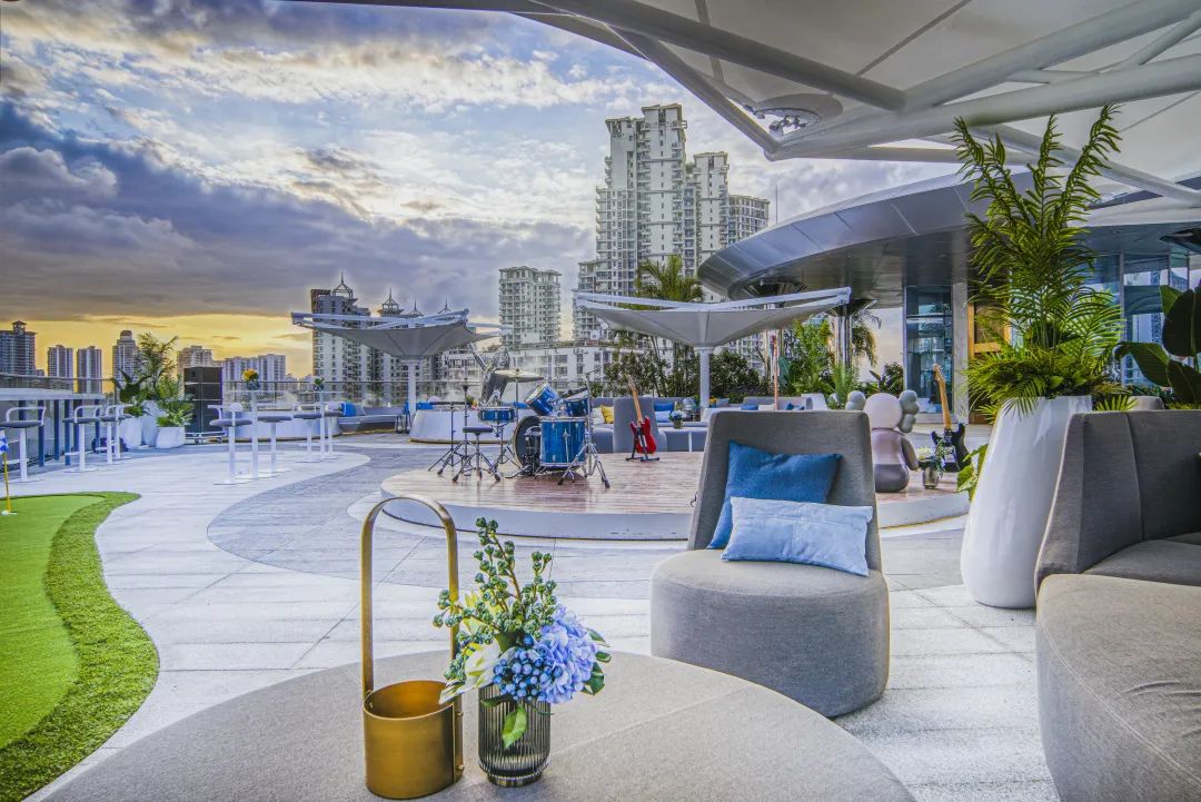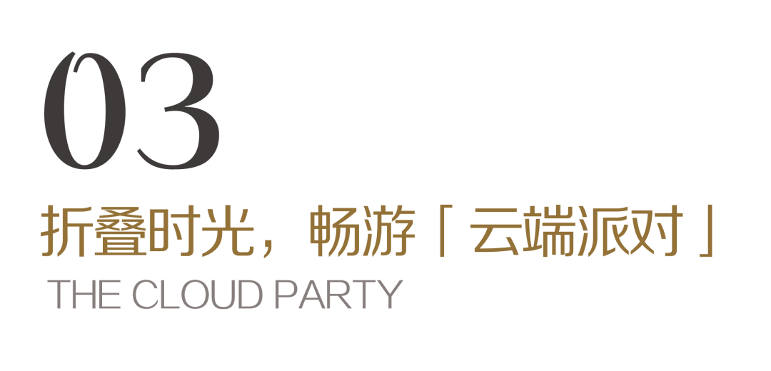 作为整个动线体验的点睛之笔,「云端派对」将艺术感与自然性兼容并蓄,植入休闲花园空间、迷你高尔夫、空中吧台、中央舞台等高端会所体验,呈现未来大区精致、充满活力的休闲聚会场景。