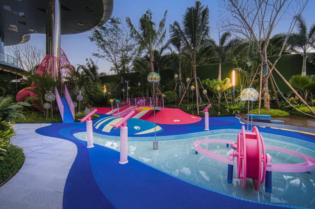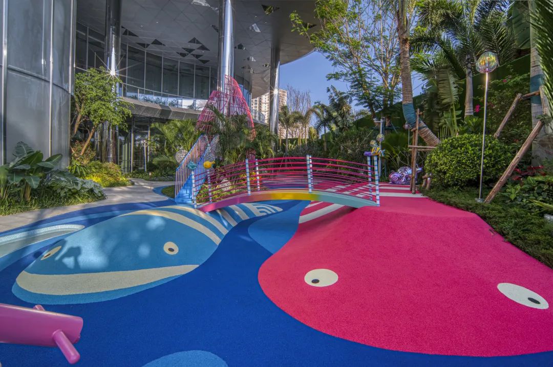 为赋予儿童更多丰富的想象力与协同合作的挑战,通过特色热带植物打造休闲花园,以绚丽的互动装置,缤彩玩乐氛围营造,激发孩子们探索欲望。