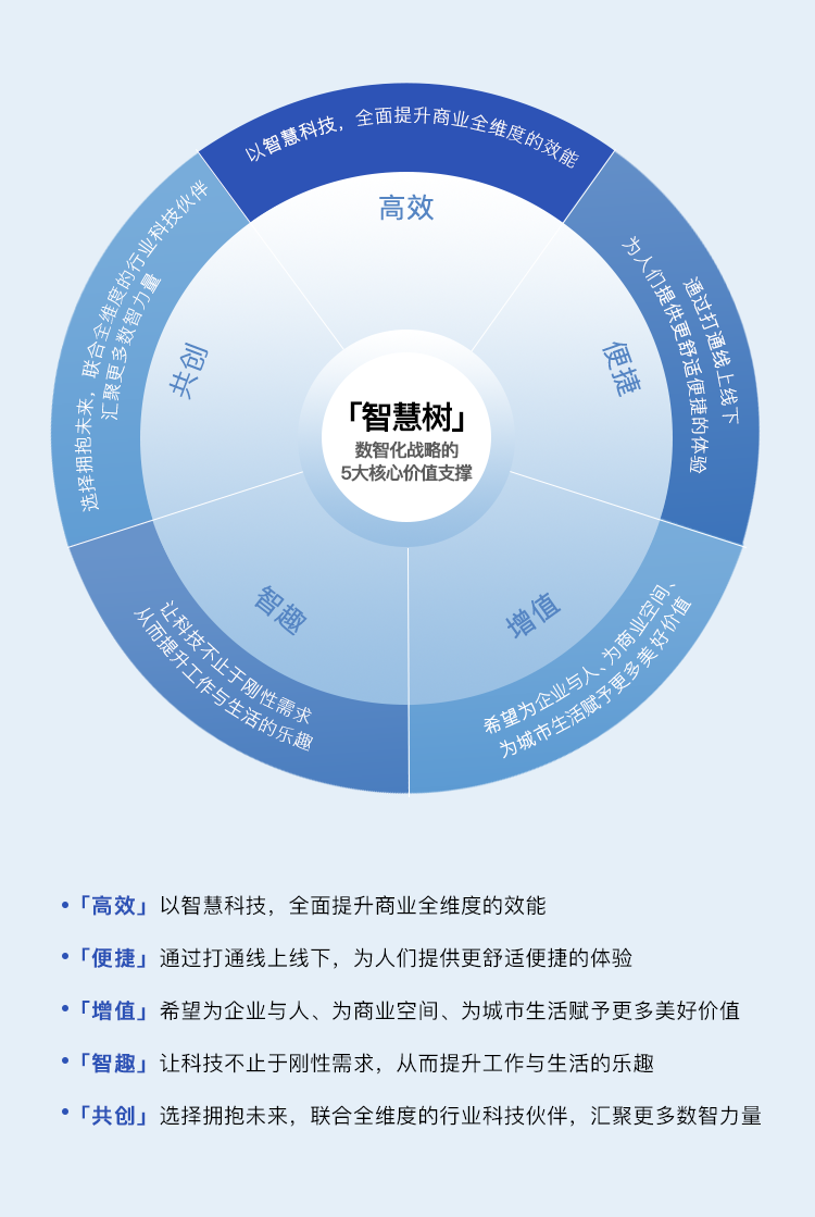 “智慧树计划”提出自下而上的数智美好价值链:空间“M端智慧管理平台”→企业“B端商户智慧经营分析”→人“C端全场景智慧服务”。