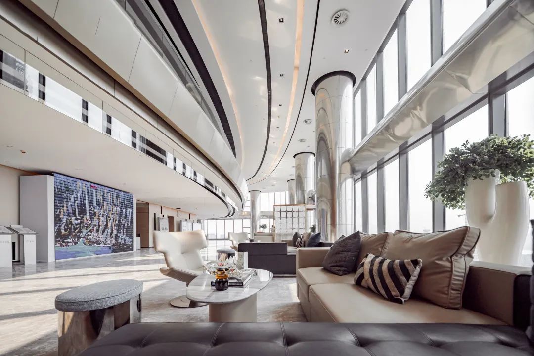 34楼云端会客厅,于9月15日正式对外开放。核心筒及外框板完成100%,幕墙层间封堵完成100%,机电电箱完成100%。