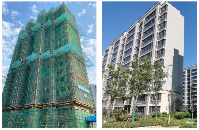 北苑全部楼栋均已封顶,南苑全部楼栋外立面已全部完工。