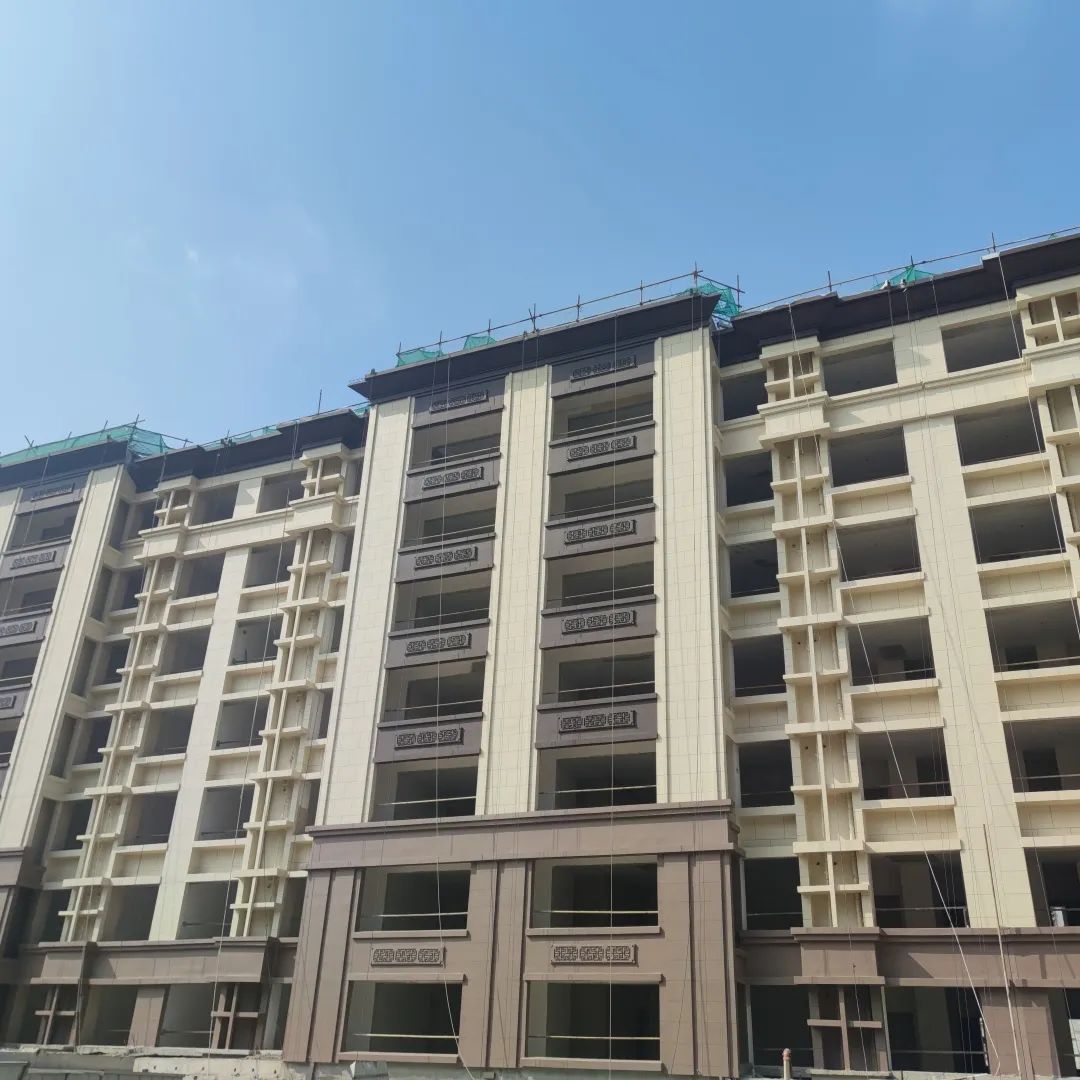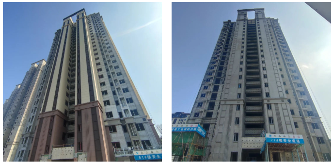项目1-18#楼主体、砌体、屋面已完成,内外墙抹灰、窗框安装基本完成。商办项目主体、砌体、屋面、内外墙抹灰、窗框安装已完成,外墙保温完成70%。
