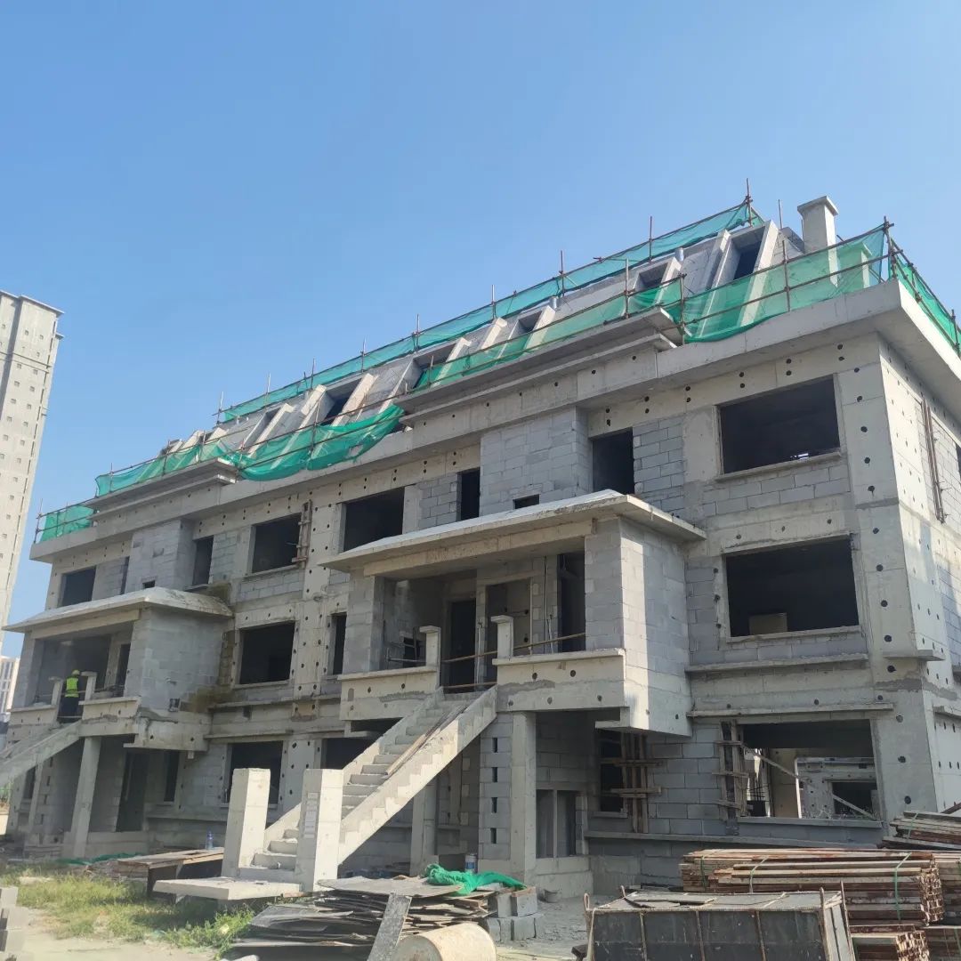 洋房43#、60#、63-65#、67-69#楼主体结构完成,砌筑抹灰完成;地面浇筑完成80%,一遍腻子完成75%;外窗附框安装完成85%,雨落水管、室内排水管安装完成;外立面完成55%。叠拼:44#-57#楼主体结构完成,砌筑完成80%