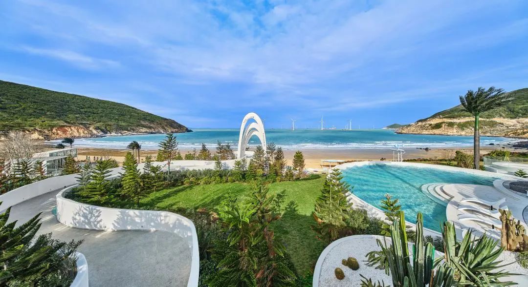 天高海蓝,沙软云白,一片纯净之地,被微微海风吹拂着,美的让人心动。水道泛涌,浪花如练,大练岛格外引人注目,极致景色正使其成为下一个万众瞩目的国际度假岛。