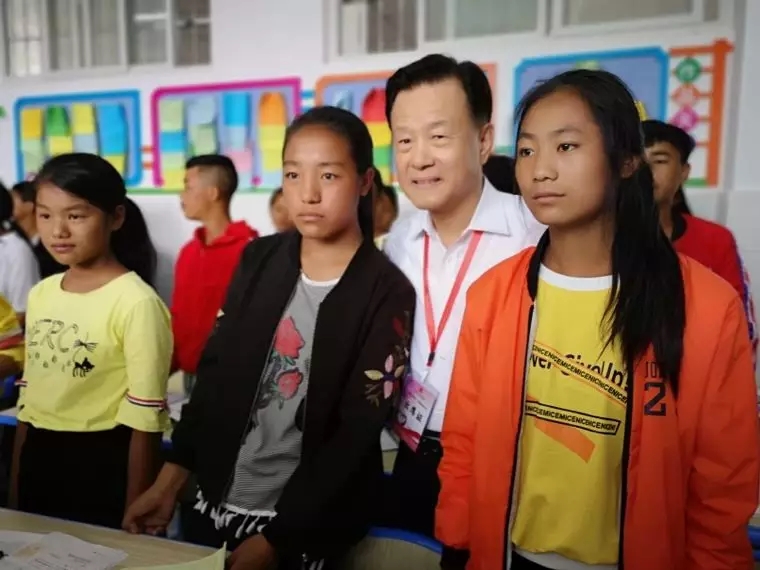 启动仪式后,许荣茂先生随考察团先后到普格民族中学、普格中学看望栋梁班学生,为孩子们赠送文体用品,关切询问他们的学习生活情况。期间,许荣茂先生专程探望了正在上数学课的学生们,看着孩子们自信的笑容,他难掩喜悦之情,欣慰的目光似乎在鼓舞他们“当有志青年,做国之栋梁”。
