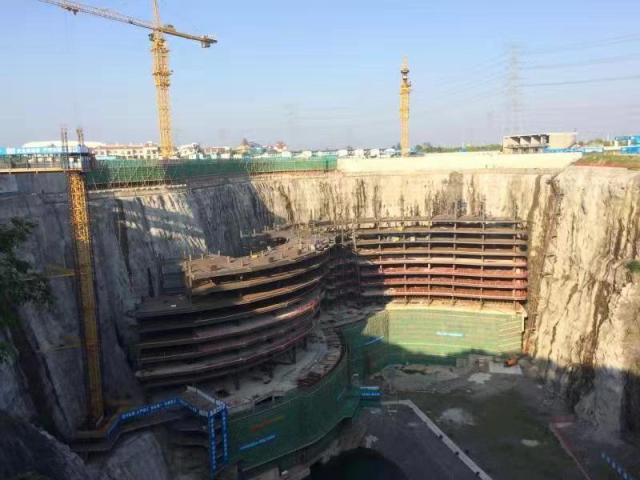 当时全世界范围内混凝土向上输送技术已经相当成熟,但是远距离向下输送却无例可援。若指望塔吊吊送混凝土无异于蚂蚁搬家,只怕“深坑酒店”的完工之日仍遥遥无期。