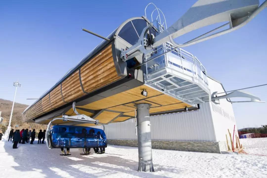 采购了长春市第一条法国进口脱挂式抱索器索道——波马索道。波马(POMA)索道公司是世界顶级的索道设备商,索道为脱挂抱索器6人吊椅,带有防风罩配置,游客搭乘时可尽情享受俯冲而下的快感,在原有索道的基础上大大提高了舒适度及缩短了运输时间。
