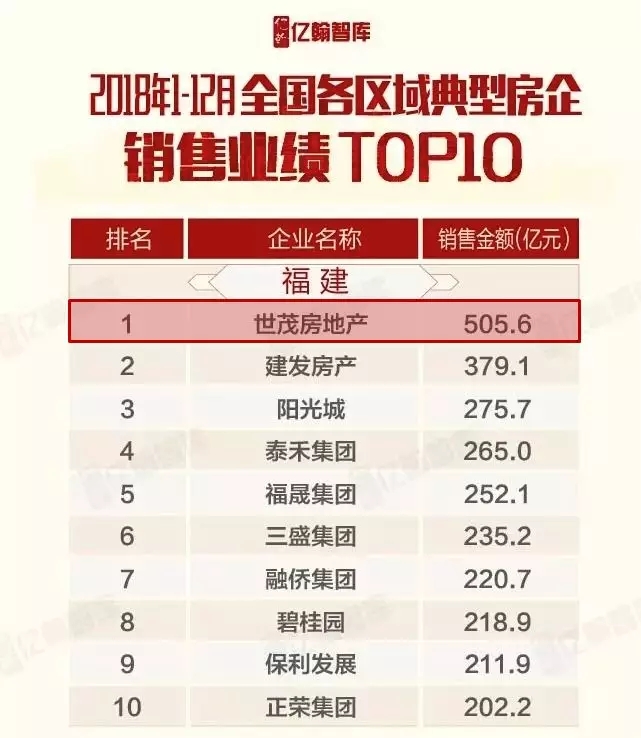 据亿翰智库《2018年1-12月全国各区域典型房企销售业绩TOP10》数据显示,球王会体育在线福建地区公司销售金额达到505.6亿元,为集团贡献了接近30%的销售金额,位列福建房企销售业绩榜首,同时荣膺“福厦泉三城销冠”。