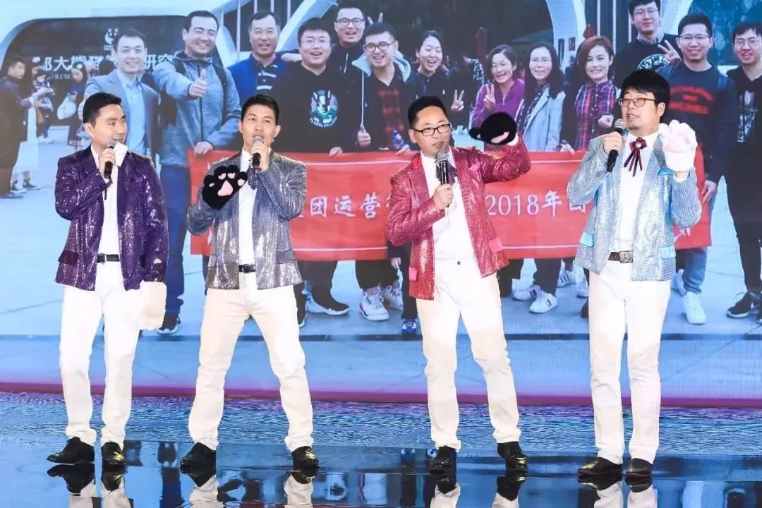 “Shimao F4”组合徐奕总、刘明广总、赵维东总、瞿刚总以帅气的姿势演绎《学猫叫》,赢得了现场一片尖叫。