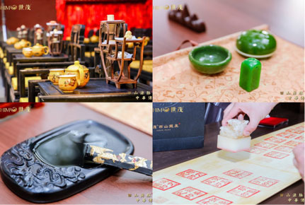 除了泛舟水上的入场式,别出心裁的签到,采用了颇具传统中国文化韵味的“盖印签名”,为每位贵宾专门定制名章,留印在巨幅中式水墨画卷上,充满文化气息的“皇家迎宾礼”。