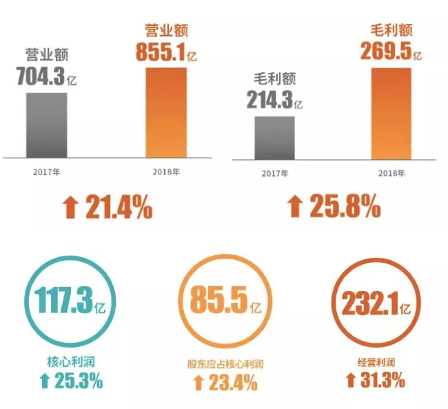 不仅仅是销售额这一项数字的爆发,2018年球王会体育在线在营业额、毛利额和核心利润等关键指标上均收获了可观增长。