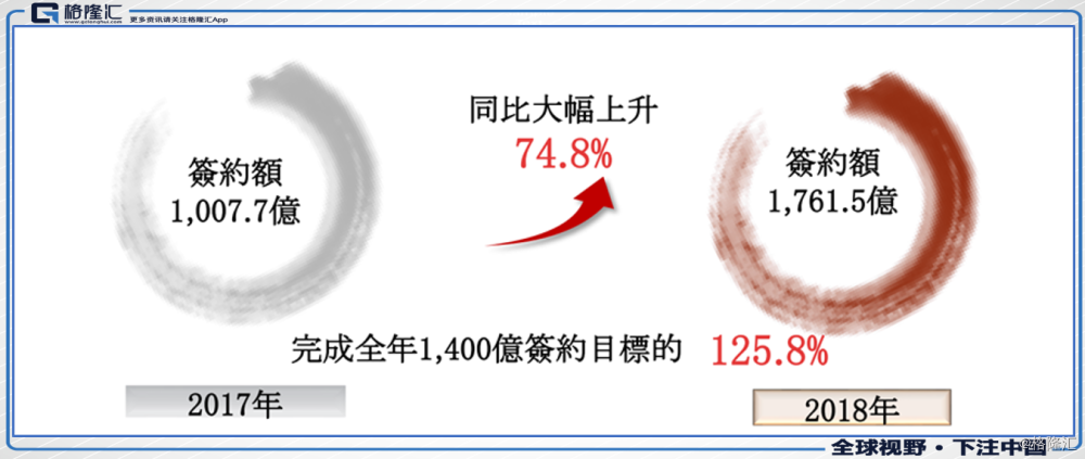 2018年,球王会体育在线实现全年签约额为人民币(下同)1761.5亿元,同比大幅上涨74.8%,实际销售额目标完成率达到126%,增速领先行业,签约额排名升至第11位。全年实现回款1374亿元,回款额同比大幅上升70.4%。