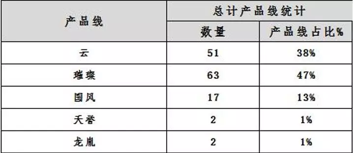 剩下2大顶级产品线:天誉目前南京、杭州各1个,龙胤北京和苏州各1个,各自占比1%。