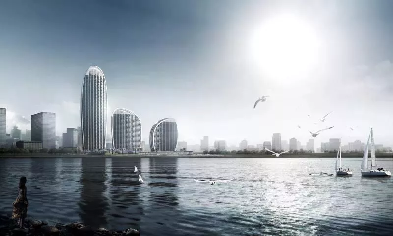 三栋塔楼构成“S”形海岸线