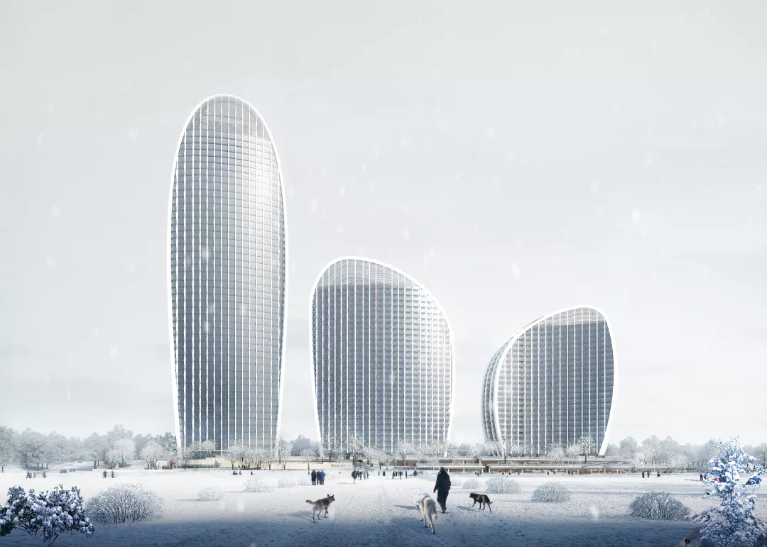 三栋塔楼构成“S”形天际线