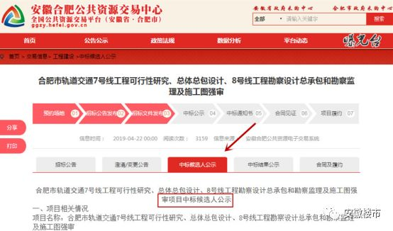 合肥市轨道交通7号线工程可行性研究、总体总包设计、8号线工程勘察设计总承包和勘察监理及施工图强审项目中标候选人结果公示如下:
