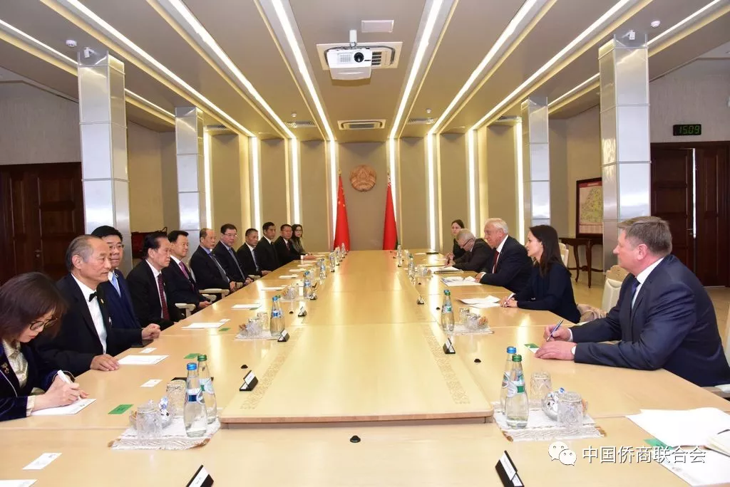 5 月 3 日(明斯克)下午,白俄罗斯共和国院议长米哈伊尔·米亚斯尼科维奇在总理府会见以中国全国政协常委、中国侨联顾问、中国侨商联合会会长、球王会体育在线董事局主席许荣茂为团长的中国侨商联合会代表团一行。