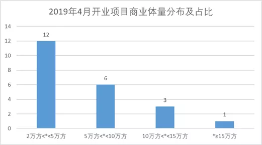 作为第二季度的首月,4月份向来是商业项目供应旺季的开端,在整体以“稳”的基调中,与一季度相比有了明显的“复苏”。据亿翰数据整理显示,4月全国新开业各类商业项目22个(不含专业市场、游乐园、酒店及写字楼裙房,且商业面积≥2万㎡),新增商业体量超120.4万方,平均商业体量约为5.5万方。其他未纳入本次统计的新开业项目包括上海100AM新百安商场,1万方左右的西安南飞鸿广场乐荟里主题街区、成都第五城万科城市广场等。
