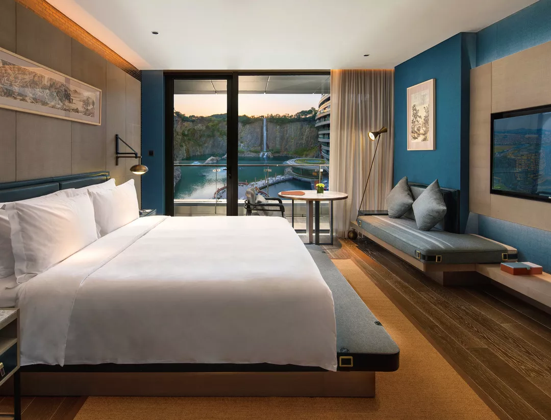 这座酒店有一个优美的设计概念“无尽的画布”,它将法式浪漫与江南意境完美融合,“万国画廊”、 专属艺术品“仲夏·艾美丽”等更是营造出独一无二的艺术气息。