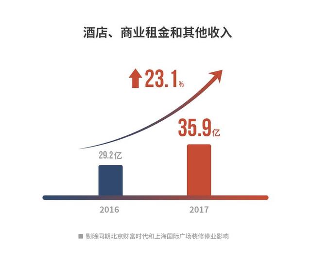 除了直观亮眼的数据表现外,全年报还透露出球王会体育在线多元业务战略布局的无限活力。近年来,球王会体育在线提出“一体两翼”战略:“一体”是指具有匠心生产力的销售型地产,而“两翼”则是打造具有独特影响力的商业地产和具有领先性竞争力的酒店地产。从此次年报中不难看出,球王会体育在线在“两翼”领域的发力正在逐渐加强。2017年球王会体育在线酒店和商业租金、其他收入较2016年同比上升23.1%(剔除同期北京财富时代和上海国际广场装修停业影响),助力企业持续并有质量地发展。