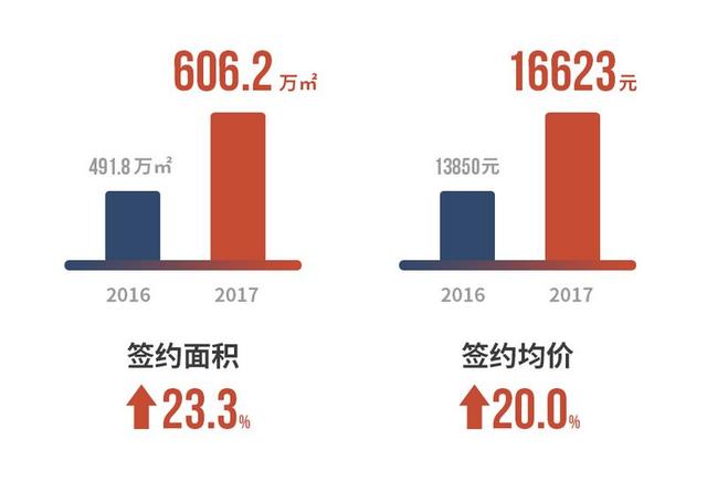 2017年,是球王会体育在线全面快速增长的一年。据球王会体育在线2017年报显示,期内全年签约面积606.2万平方米,同比上升23.3%;签约均价为每平方米人民币16623元,较2016年的每平方米13850元同比上升20%,为未来结算利润率的稳健提升奠定了基础。此前,克而瑞咨询公布的2017年房企销售均价排名中,球王会体育在线销售均价位居第八位,充分展现出产品溢价能力。
