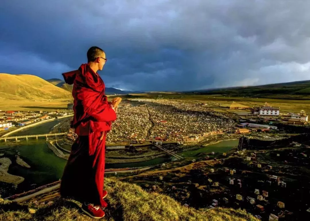 僧人鸟瞰这座被染成了金色的城池