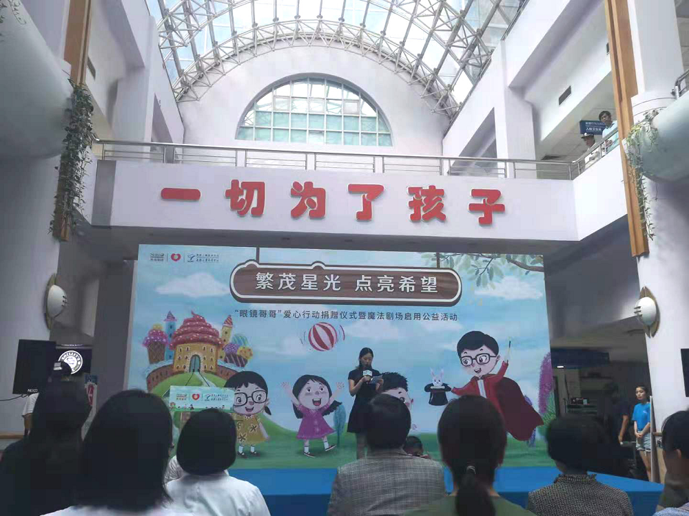 上海儿童医学中心党委书记季庆英表示,“眼镜哥哥魔法剧场”是医院新建医疗科教楼综合运营后,第一间投入使用的爱心活动空间。该空间的启用表明越来越多的公益人士已从困境患儿医疗救助延伸至儿童心灵及人文关怀。