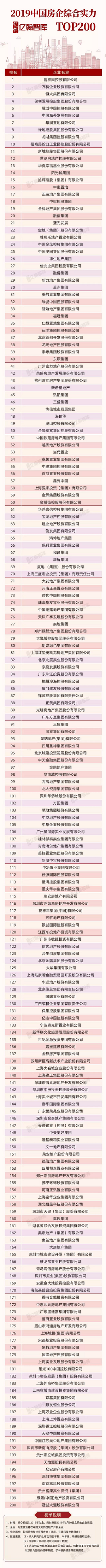 — 2019中国房企综合实力TOP200 —