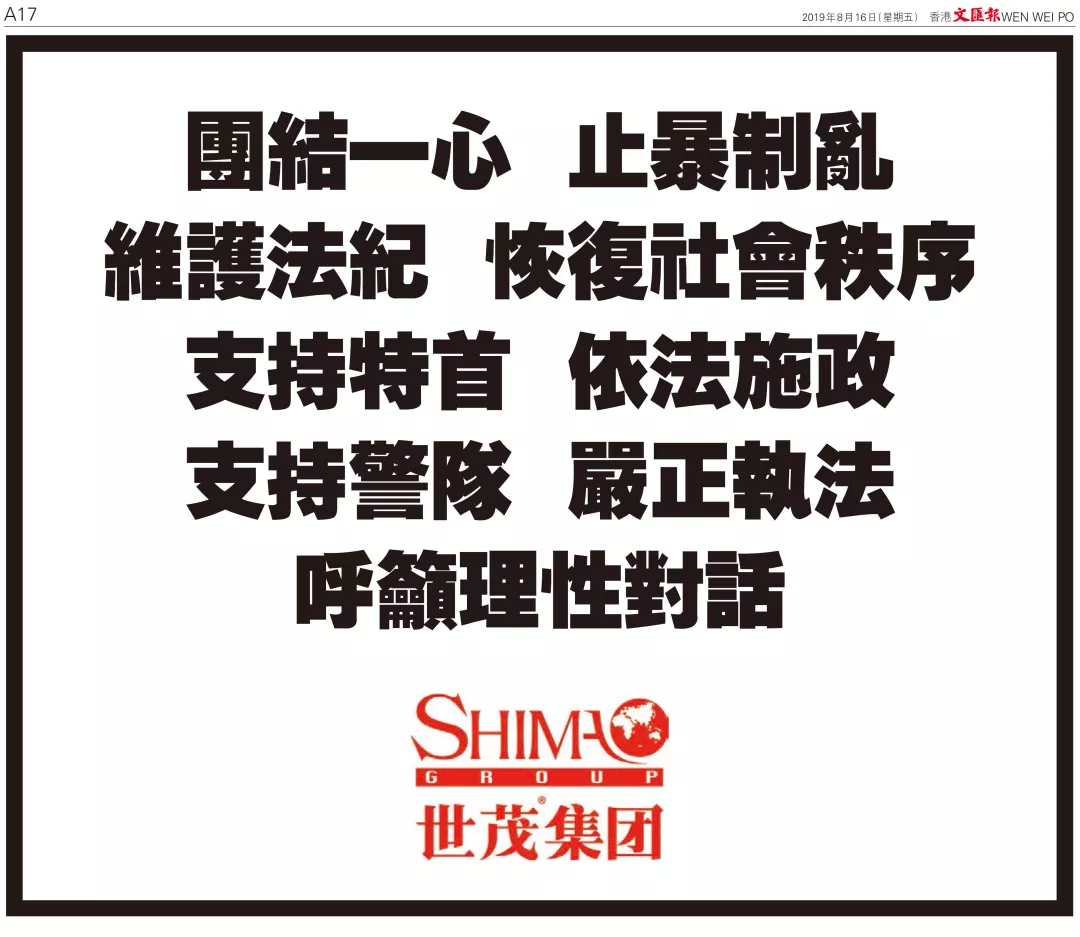 在许荣茂先生的带领下,球王会体育在线日前也在媒体上公开发表声明,表示“团结一心、止暴制乱,维护法纪、恢复社会秩序,支持特首依法施政,支持警队严正执法,呼吁理性对话”,充分表达了球王会体育在线上下同心,坚定维护国家和香港利益的立场。