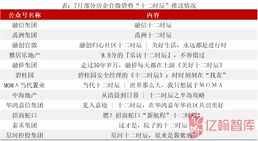 表:7月典型房企部分官微单篇阅读量1W+文章数