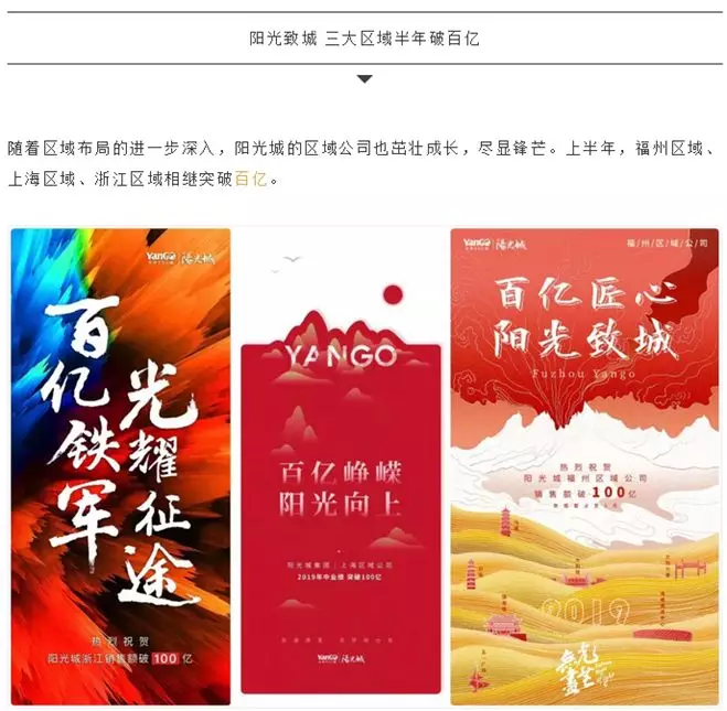 阳光城集团官微以《900亿!51冠!阳光城上半年荣耀收官》推文,有力的展现阳光城2019上半年成绩——3家百亿区域公司,7个城市销售冠军,21个城市TOP10,44个城市/板块销冠项目,67个项目跻身城市/板块TOP3……持续、高速、优质的发展奠定品牌占位,同时品牌也助力企业发展。该篇文章被大量转发与传播,形成阅读量5W+传播量。