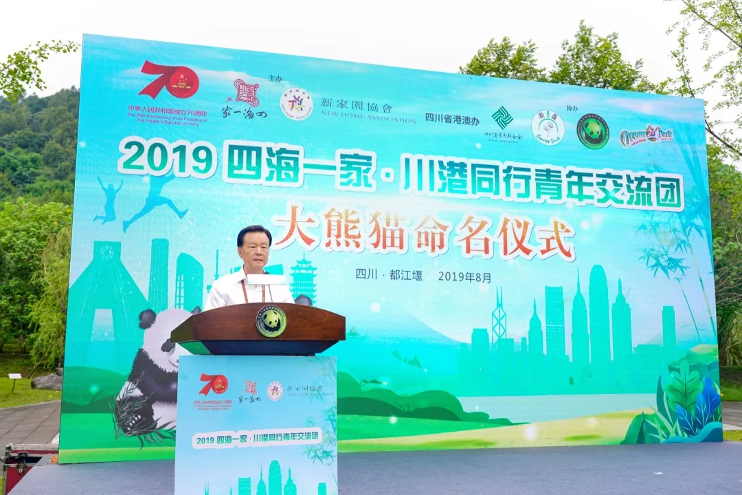 全国政协常委、香港新家园协会董事会主席许荣茂表示:“这对双胞胎大熊猫就如四川和香港一样,有着血浓于水的手足之情。将两只熊猫分别命名为‘四海’和‘一家’,传承着‘四海一家’青年交流活动包容、友爱、互助的精神。”