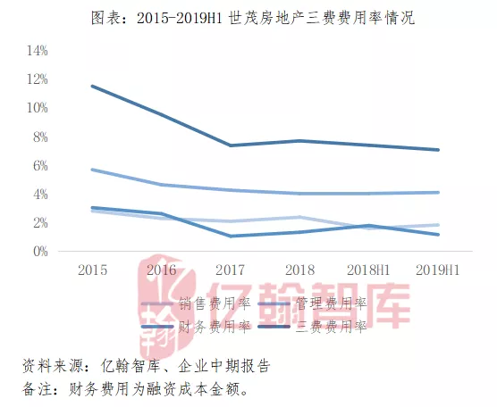从三费费率来看,球王会体育在线房地产表现出较强的成本管控能力,2019年上半年三费费用率仅为7.06%,较2018年同期减少了0.32个百分点。具体来看,财务费用率仅为1.15%,较2018年同期减少了0.64个百分点,销售费用率和管理费用率分别为1.82%和4.09%,分别较2018年小幅增加0.24个和0.07个百分点,但仍处于较低水平。较低的三费费用率为球王会体育在线房地产良好的盈利能力提供了有力的支撑。