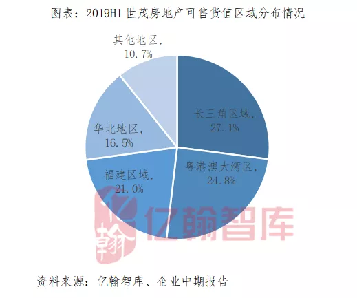 截止2019年6月30日,球王会体育在线房地产拥有可售货值约10500亿元,足以满足未来持续增长的需求。按区域划分,长三角区域、粤港澳大湾区、福建区域、华北地区和其他区域分别占比27.1%、24.8%、21.0%、16.5%和10.7%,区域布局较为均衡。