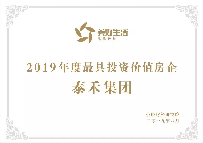 【泰禾集团】泰禾集团荣获“2019年度最具投资价值房企”