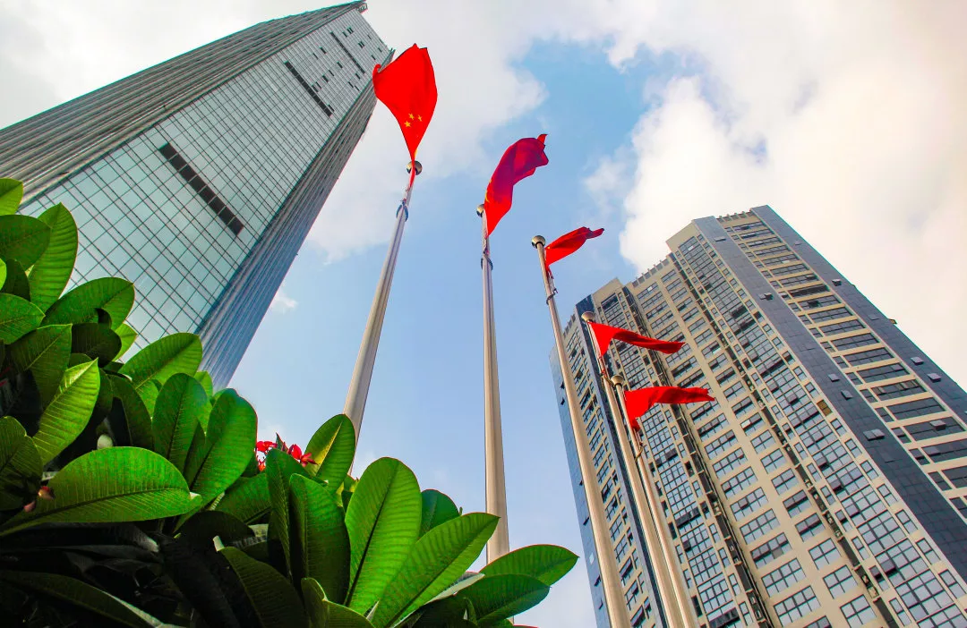 城市的“鲜红剪影”也诉说着欢庆的喜悦